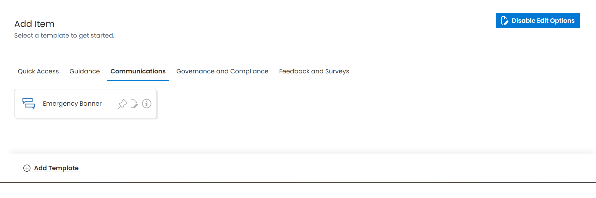 - Click here to Enable/Disable Edit Options - displays the Add Template control and inline edit icons on the existing templates